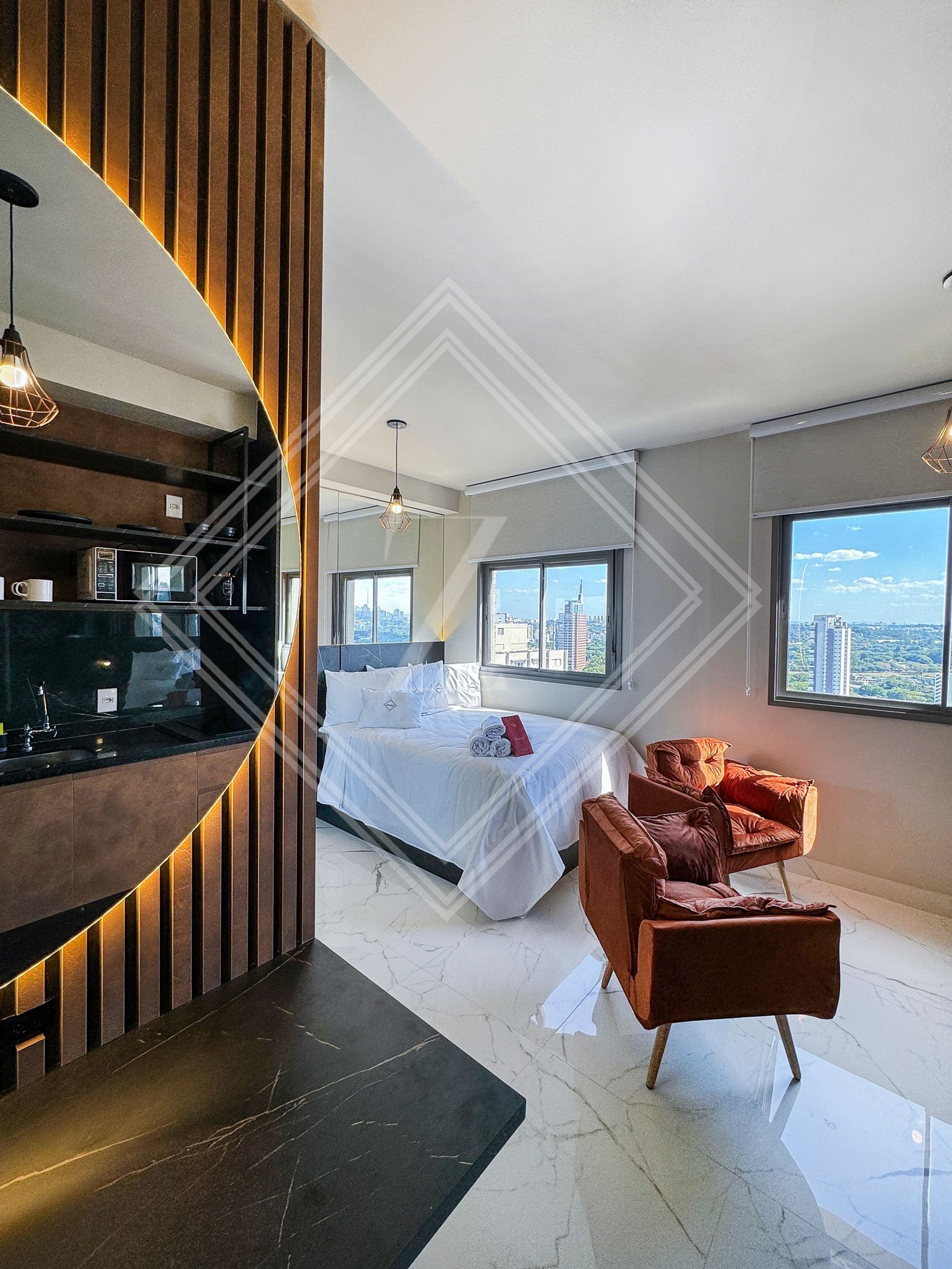 O loft 2402 do VIVA BENX é o refúgio perfeito para quem busca conforto, qualidade e sofisticação. Ideal para uma experiência inesquecível, seja sozinho ou acompanhado, com todo o aconchego que você merece. Com uma decoração refinada e pensada nos mínimos detalhes, o espaço é ideal tanto para momentos de descanso quanto para quem precisa de um ambiente agradável para home office.