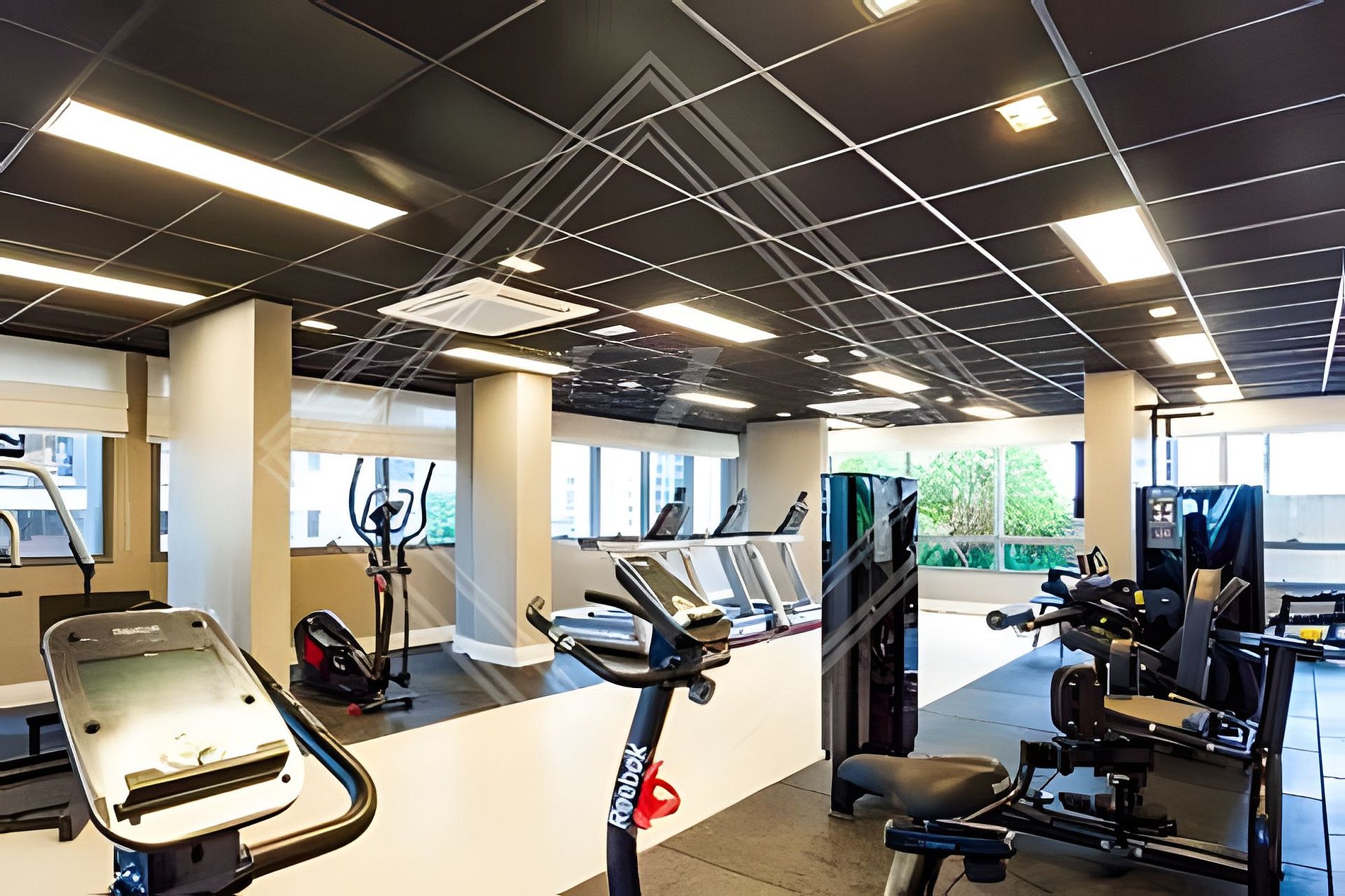 - Academia moderna com equipamentos de ginástica.