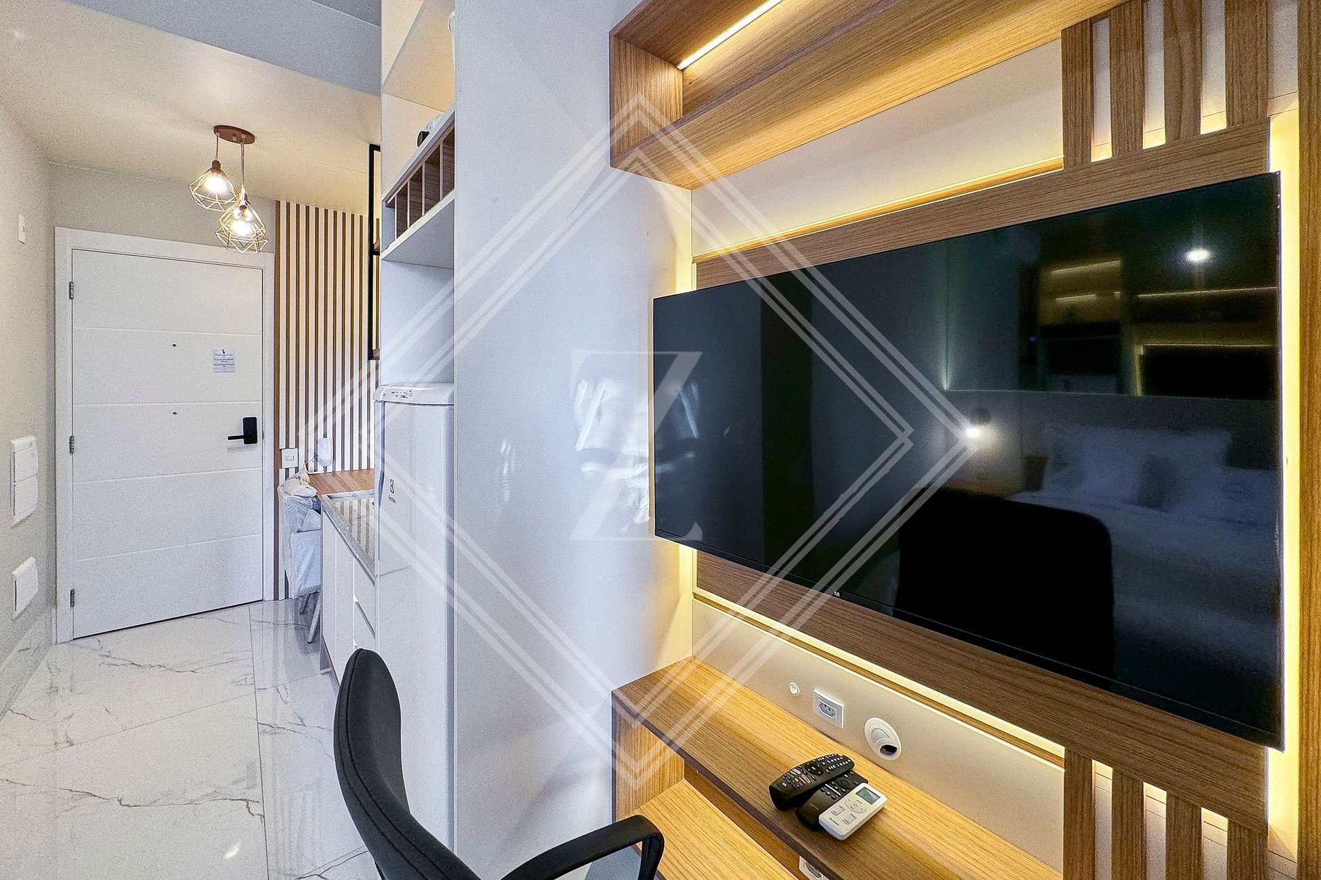 - Coworking (área de trabalho) com TV e mercadinho self service.