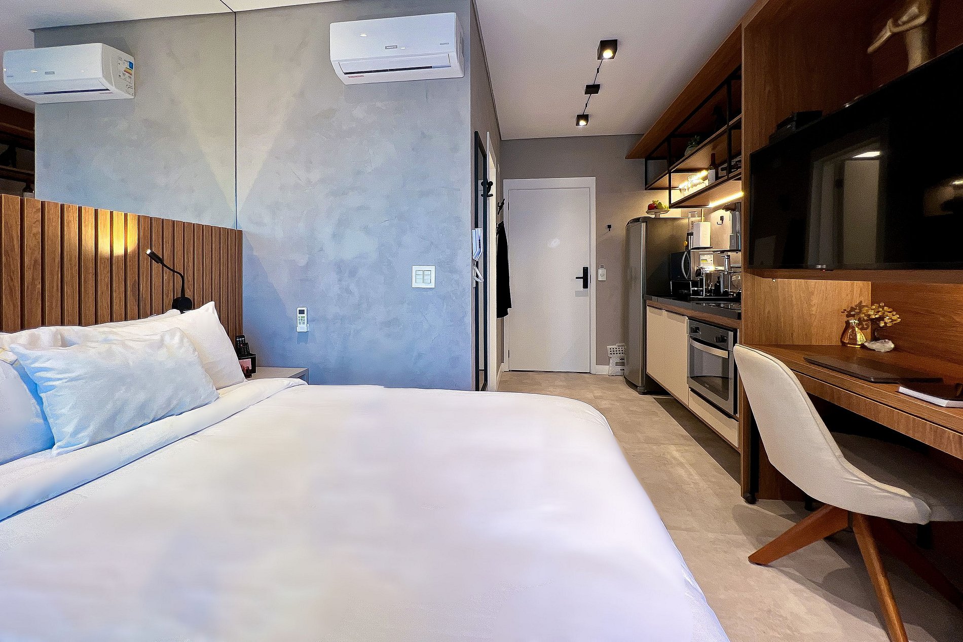 Este encantador loft é o refúgio perfeito para quem busca conforto, qualidade e sofisticação. Ideal para uma experiência inesquecível, seja sozinho ou acompanhado, com todo o aconchego que você merece. Com uma decoração refinada e pensada nos mínimos detalhes, o espaço é ideal tanto para momentos de descanso quanto para quem precisa de um ambiente agradável para home office.