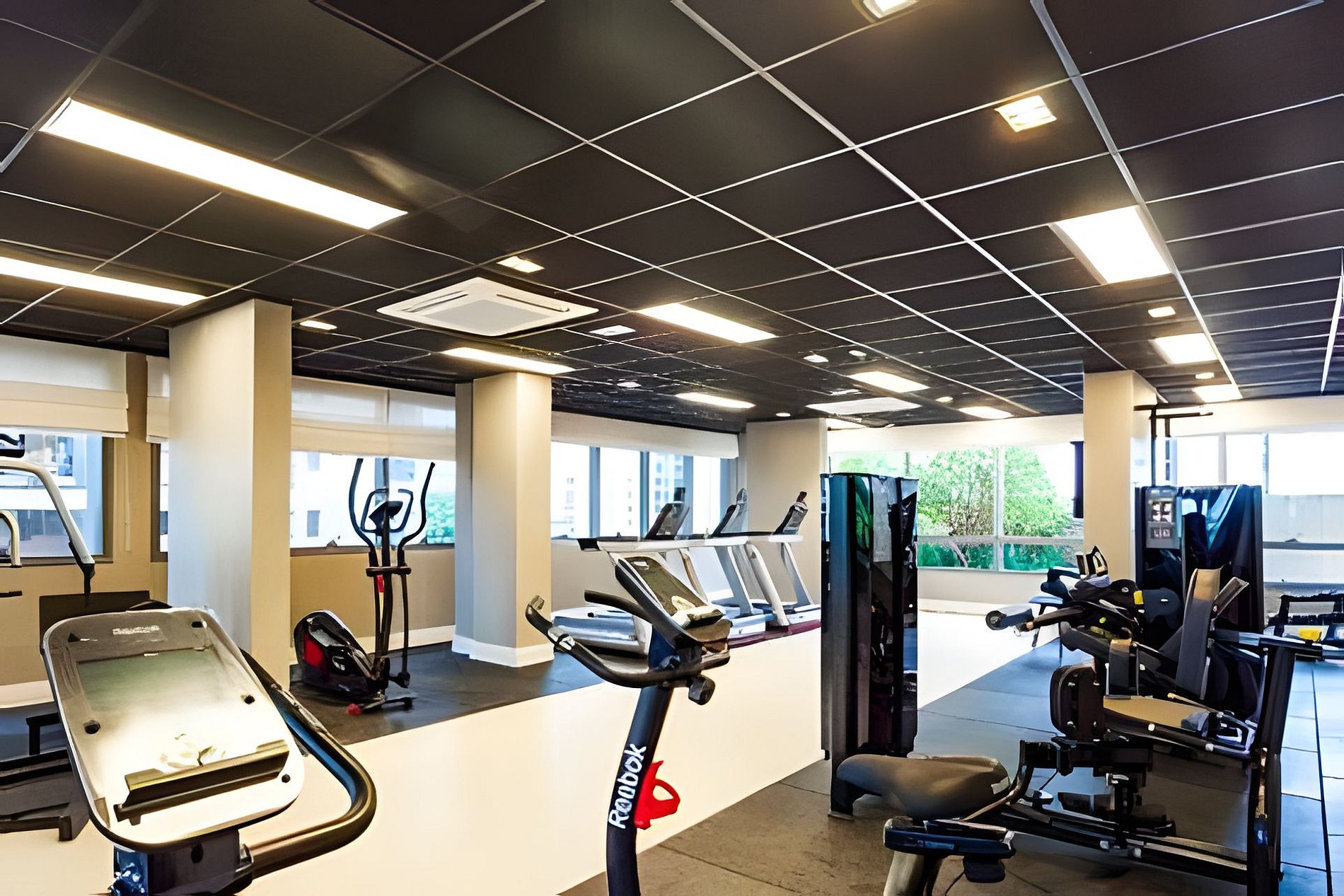 - Academia moderna com equipamentos de ginástica.