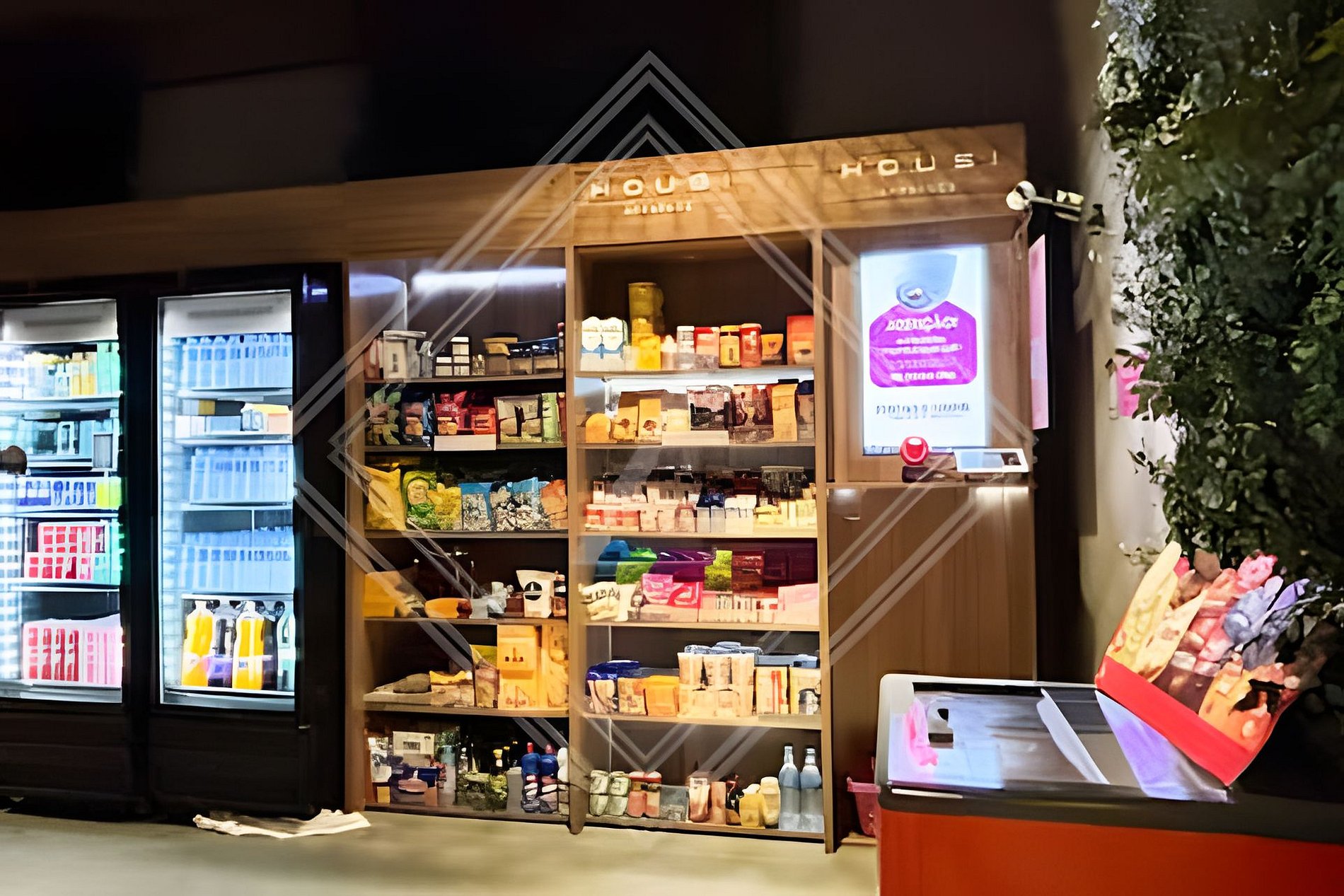 - Coworking e mercadinho self service.